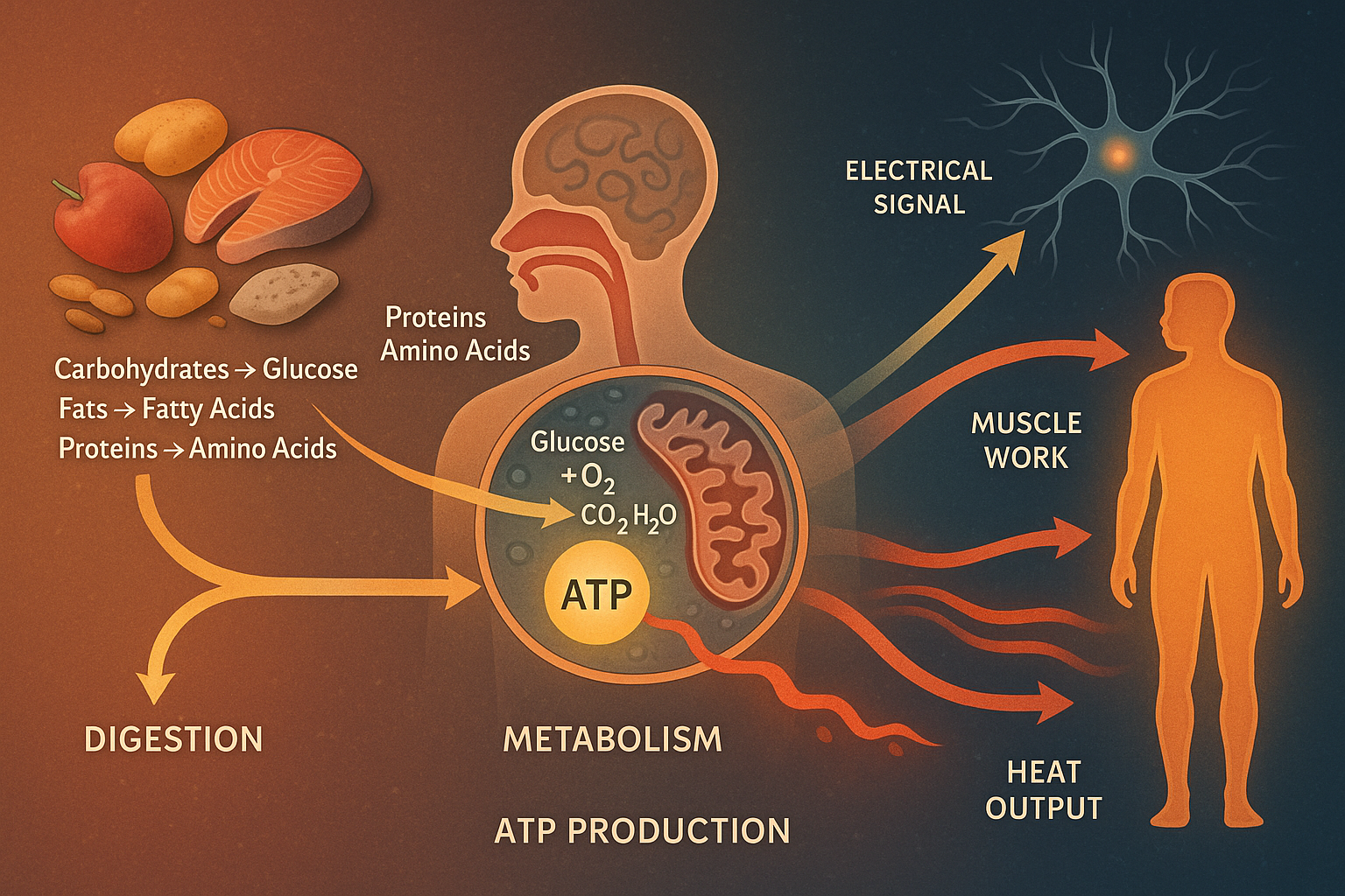 Subtitle: The Journey of Energy in the Human Body—from Digestion to Electrical Impulses, Muscle Motion, and Heat Living bodies are…