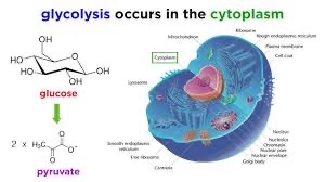 - Glycolysis takes place in the cytoplasm, where a single glucose molecule is broken down into two molecules of pyruvate and generates two ATP molecules.