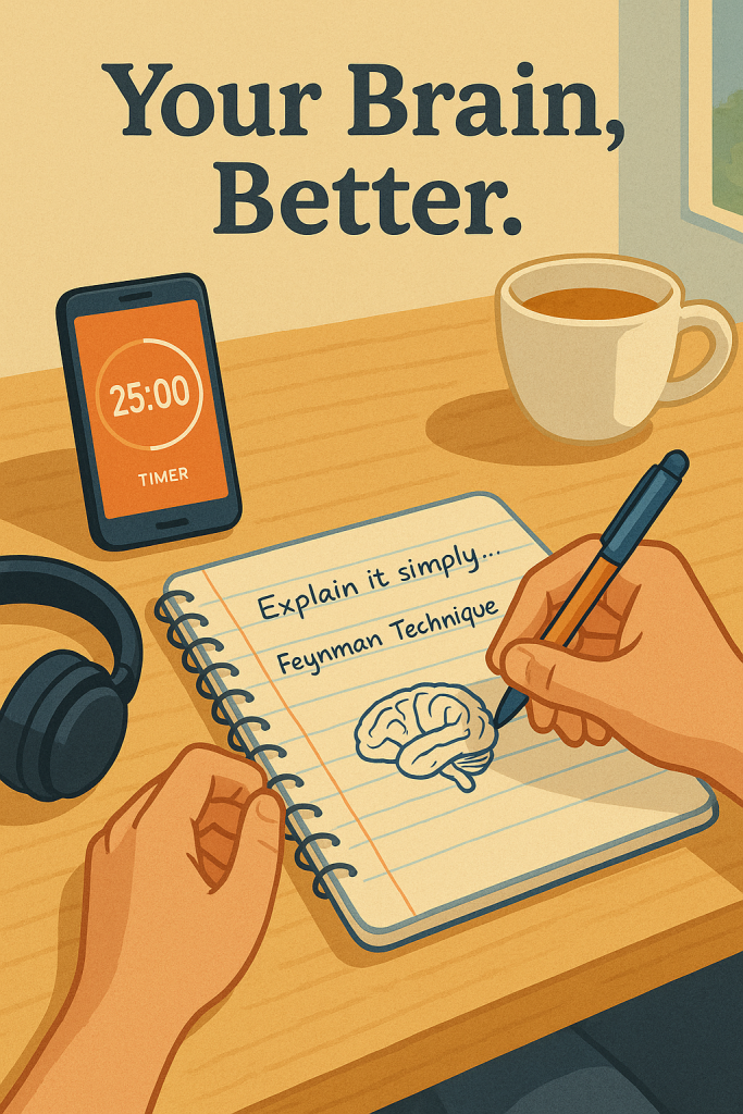 · Focus on Understanding, Not Just Memorizing: Use the Feynman Technique as a regular check-up for your knowledge. If you can teach it to a friend or even just to your wall in simple terms, you truly know it.